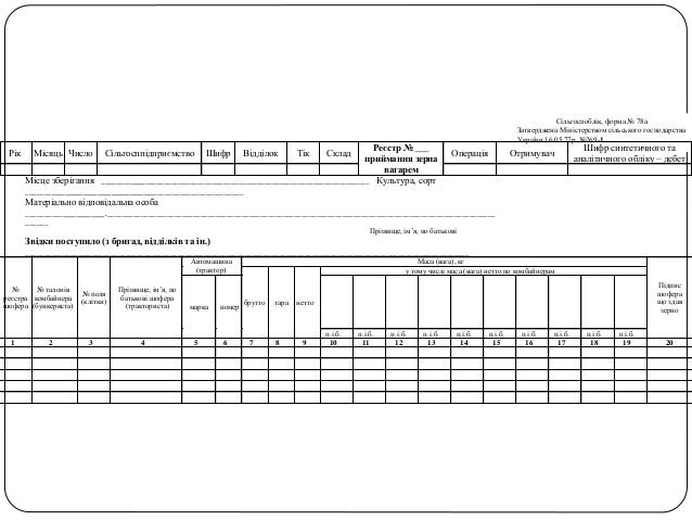 Бланк Реєстра Відправка Зерна З Поля Ф-77